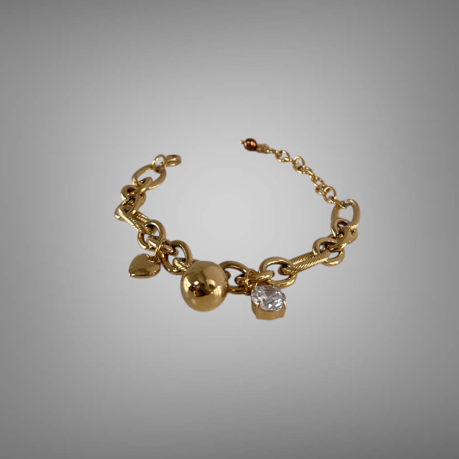 Dieses Statement Armband aus Edelstahl besticht durch seine verschiedenen goldfarbenen Glieder. Mit seinem modernen Design und hochwertigen Materialien ist es ein echter Hingucker und verleiht jedem Outfit einen edlen Touch. Perfekt für alle, die einen stilvollen Auftritt lieben.
