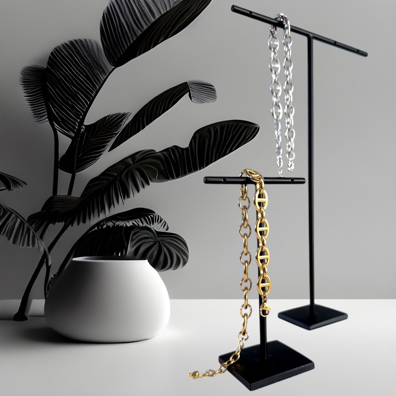 Dieses silberfarbene Armband aus hochwertigem Edelstahl besticht durch sein markantes Gliederdesign. Es lässt sich vielseitig kombinieren oder als einzelnes Statement-Piece tragen und verleiht jedem Outfit eine elegante, moderne Note. Robust und langlebig, eignet es sich ideal für den täglichen Gebrauch.