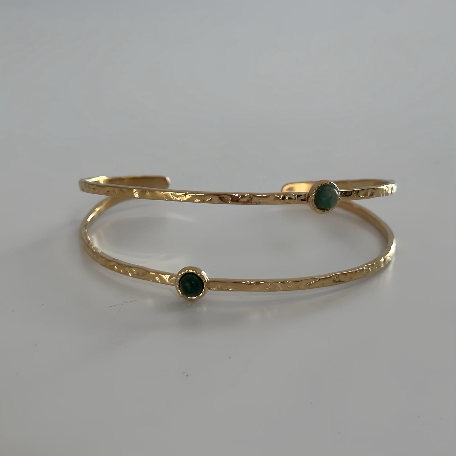 Dieser puristische Armreif besticht durch sein doppelreihiges Design, das mit echten Steinchen besetzt ist. Die klare Linienführung und hochwertige Verarbeitung verleihen ihm eine edle Ausstrahlung, die sich vielseitig kombinieren lässt. Ein zeitloses Schmuckstück, das Eleganz und Understatement perfekt vereint.