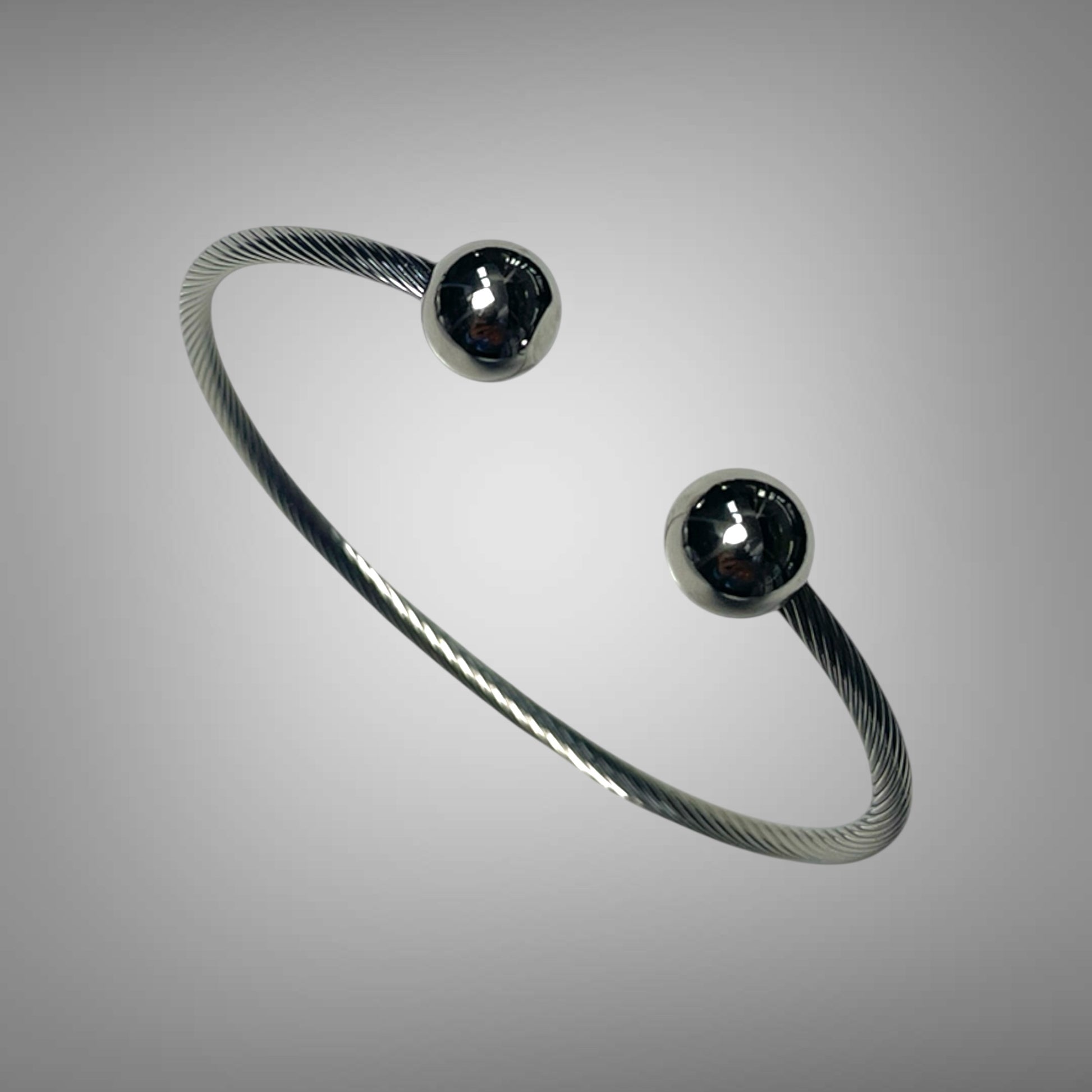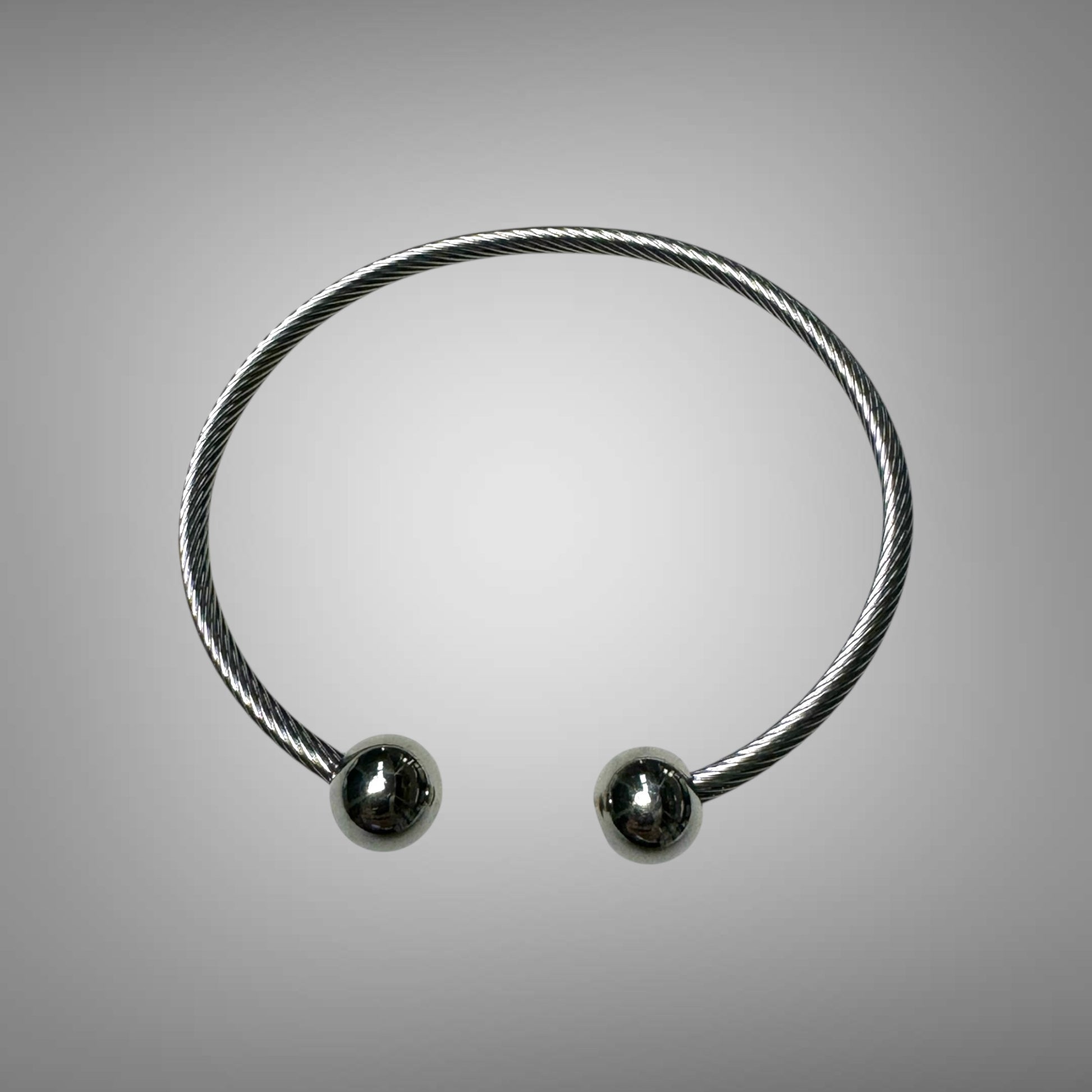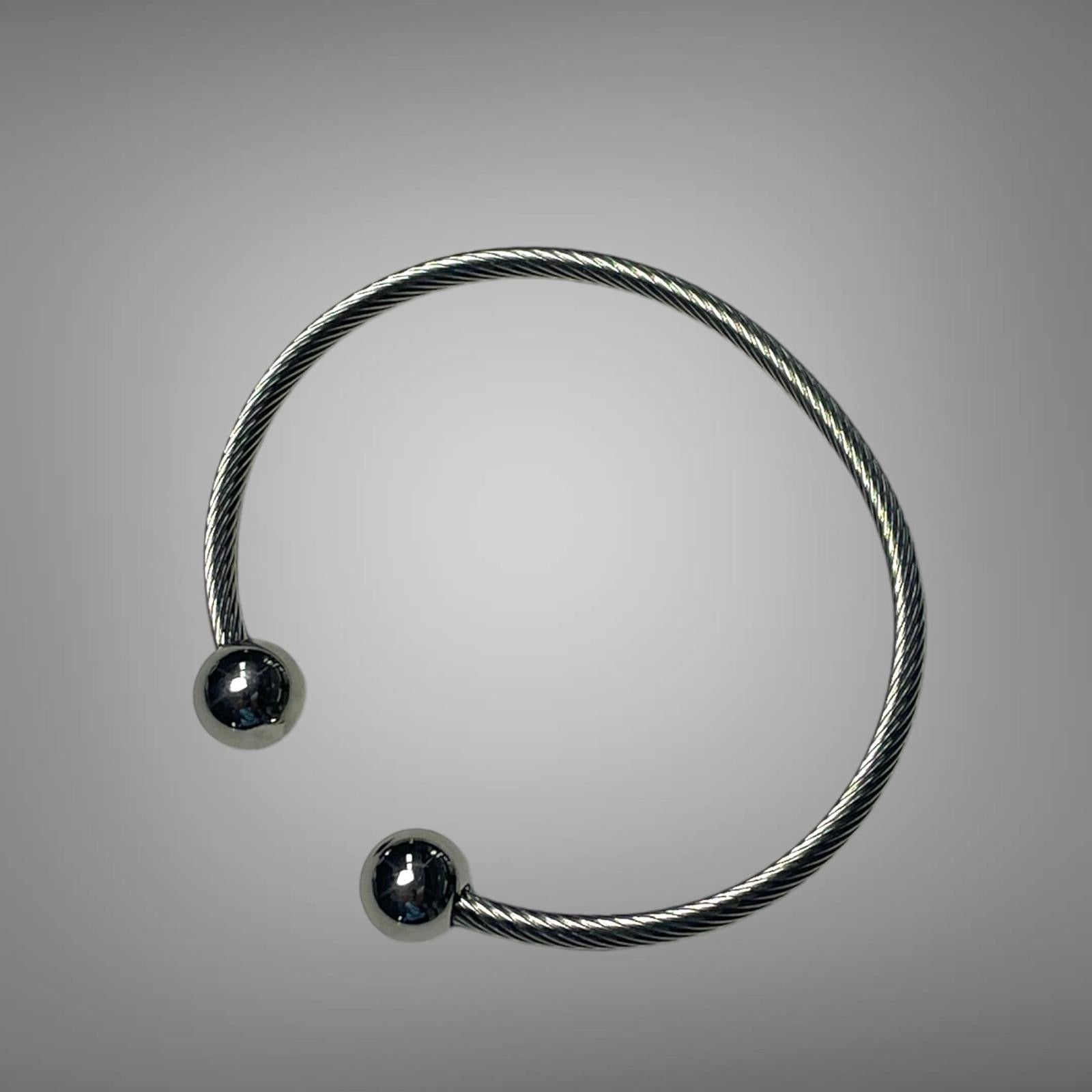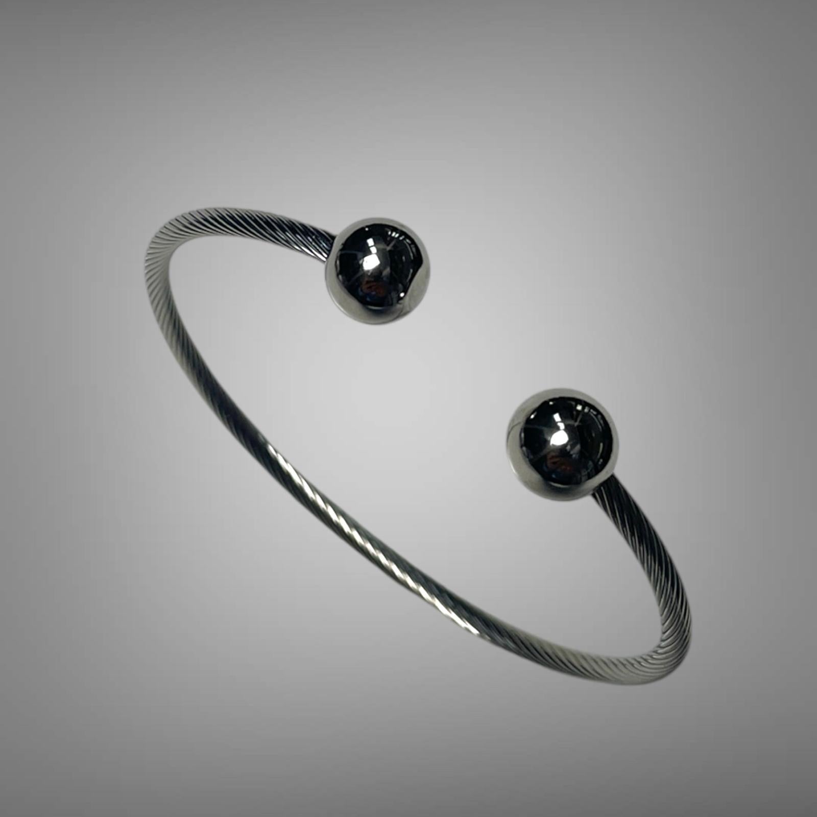 Ein offener Armreif aus silberfarbenem Edelstahl mit zwei Statement-Kugeln ist ein vielseitiges und minimalistisches Schmuckstück. Die schlichte Gestaltung macht ihn zu einem Basic-Accessoire, das sich problemlos mit anderen Schmuckstücken kombinieren lässt, ohne dabei an Wirkung zu verlieren. Die beiden Kugeln verleihen dem Armreif ein modernes und zugleich elegantes Detail, das sowohl im Alltag als auch zu besonderen Anlässen getragen werden kann.