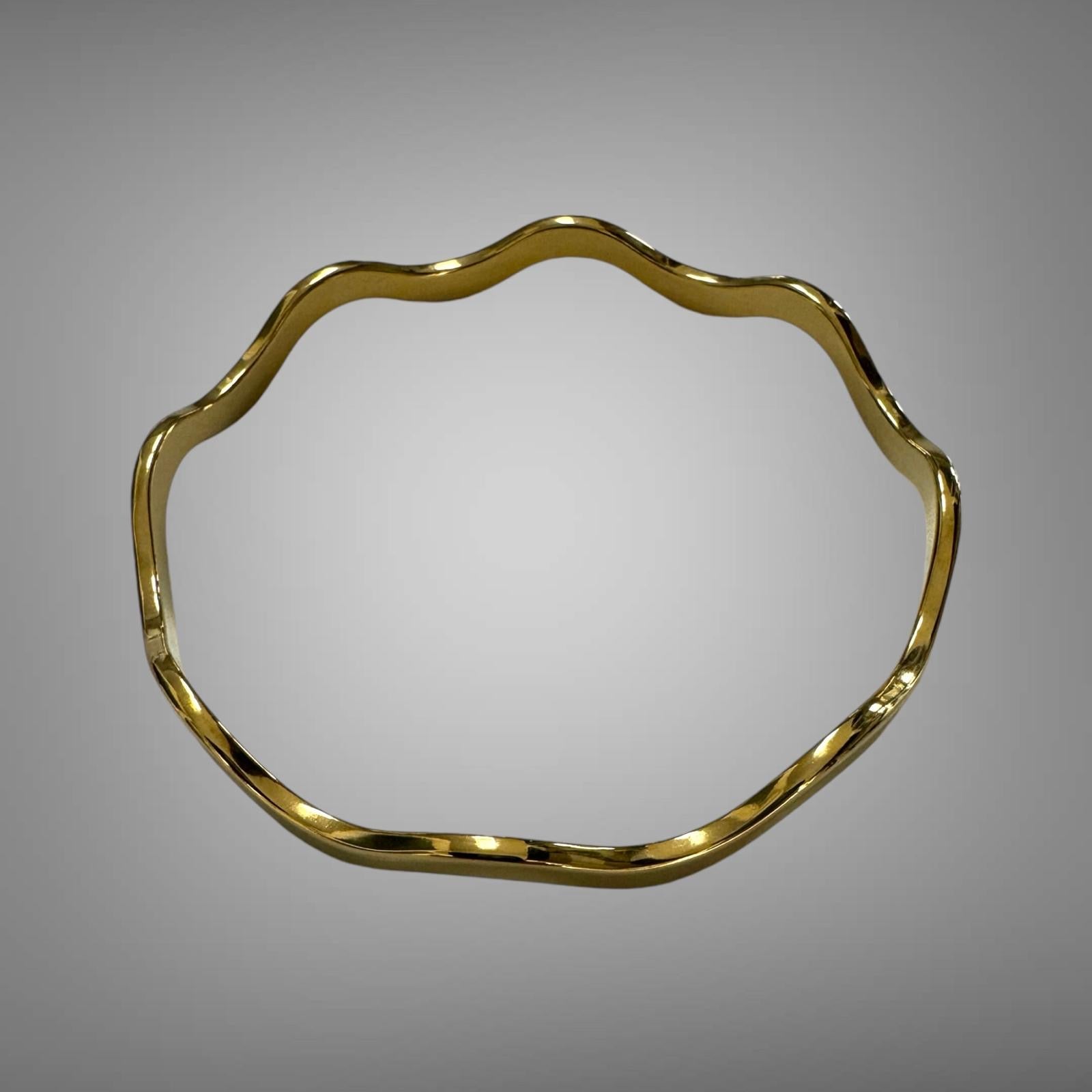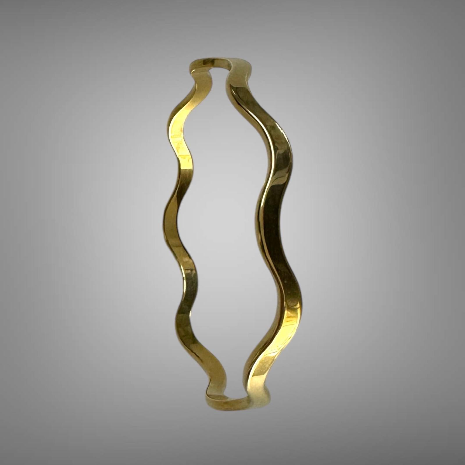 Ein wellenartiger Armreif aus Edelstahl in goldfarbener Ausführung ist ein auffälliges Statement-Schmuckstück. Das wellenartige Design verleiht dem Armreif eine fließende, dynamische Form, die ihm Bewegung und Eleganz verleiht. Die goldfarbene Oberfläche bringt einen warmen Glanz, der das moderne Design perfekt ergänzt. Mit seinem einzigartigen Look wird dieser Armreif zu einem markanten Accessoire, das sowohl im Alltag als auch zu besonderen Anlässen getragen werden kann, um ein stilvolles Statement zu setzen.
