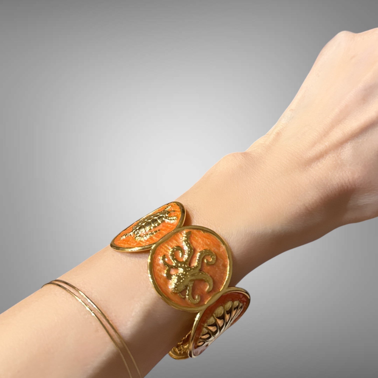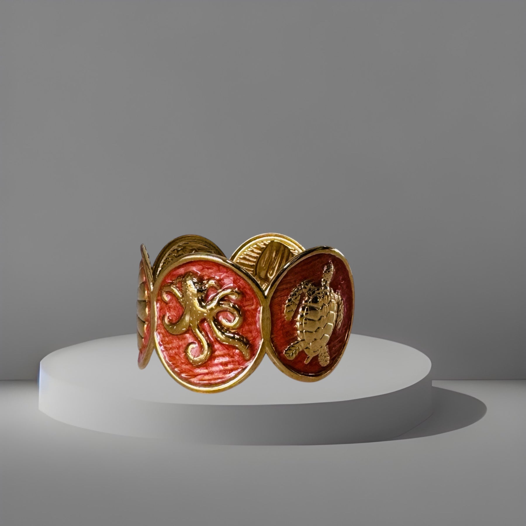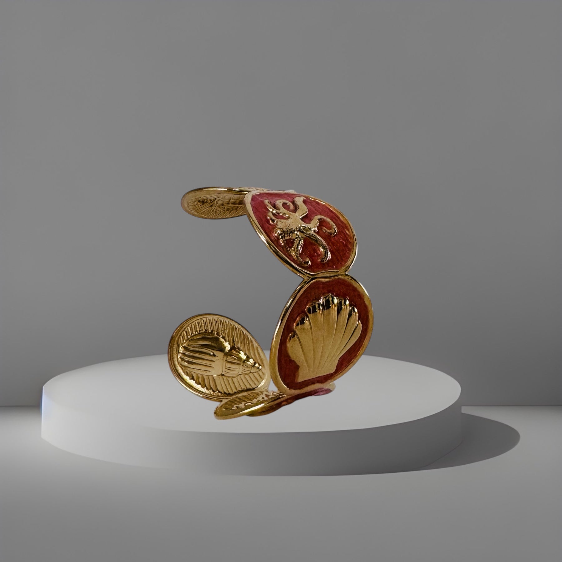 Der Armreif aus Perlmutt präsentiert ein Design mit Meeresmotiven und vermittelt ein sommerliches Gefühl. Diese Armspange kombiniert ästhetische Eleganz mit maritimen Elementen, ideal für die warme Jahreszeit. Ihre Vielseitigkeit macht sie zu einem passenden Accessoire für verschiedene Anlässe.