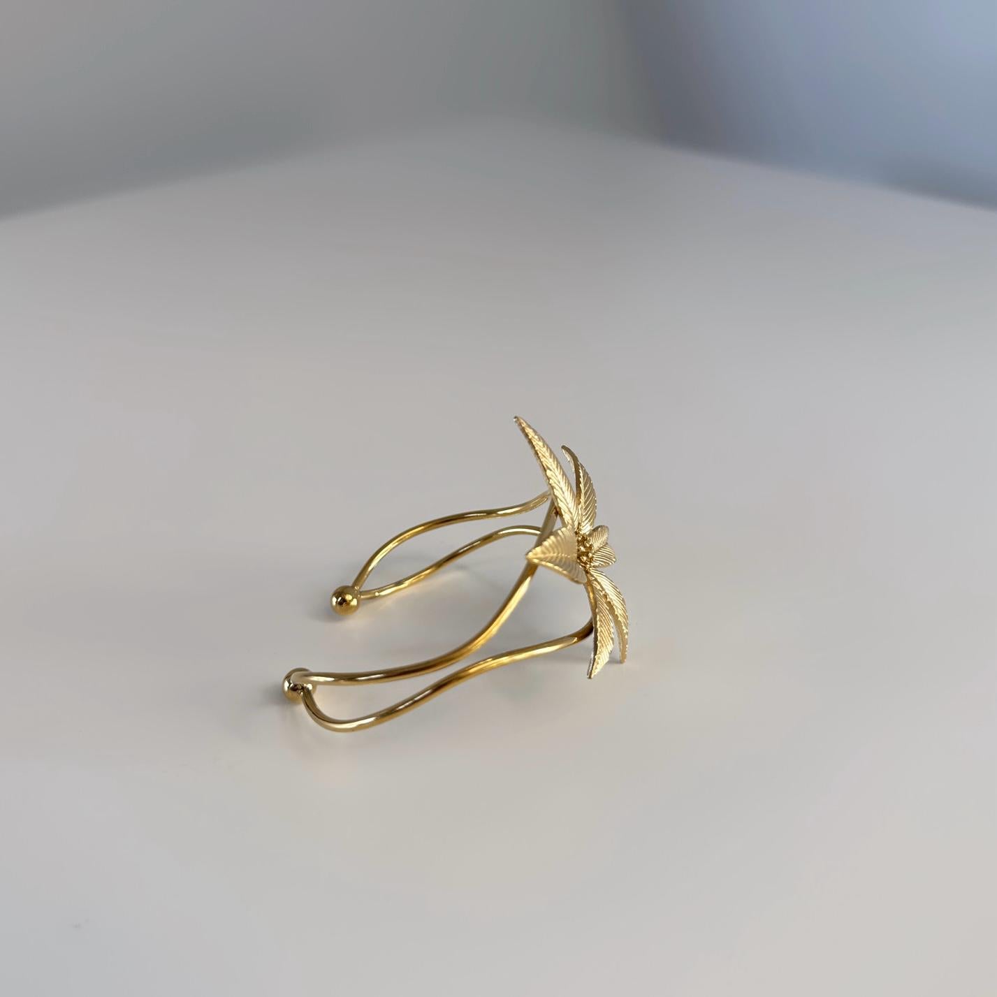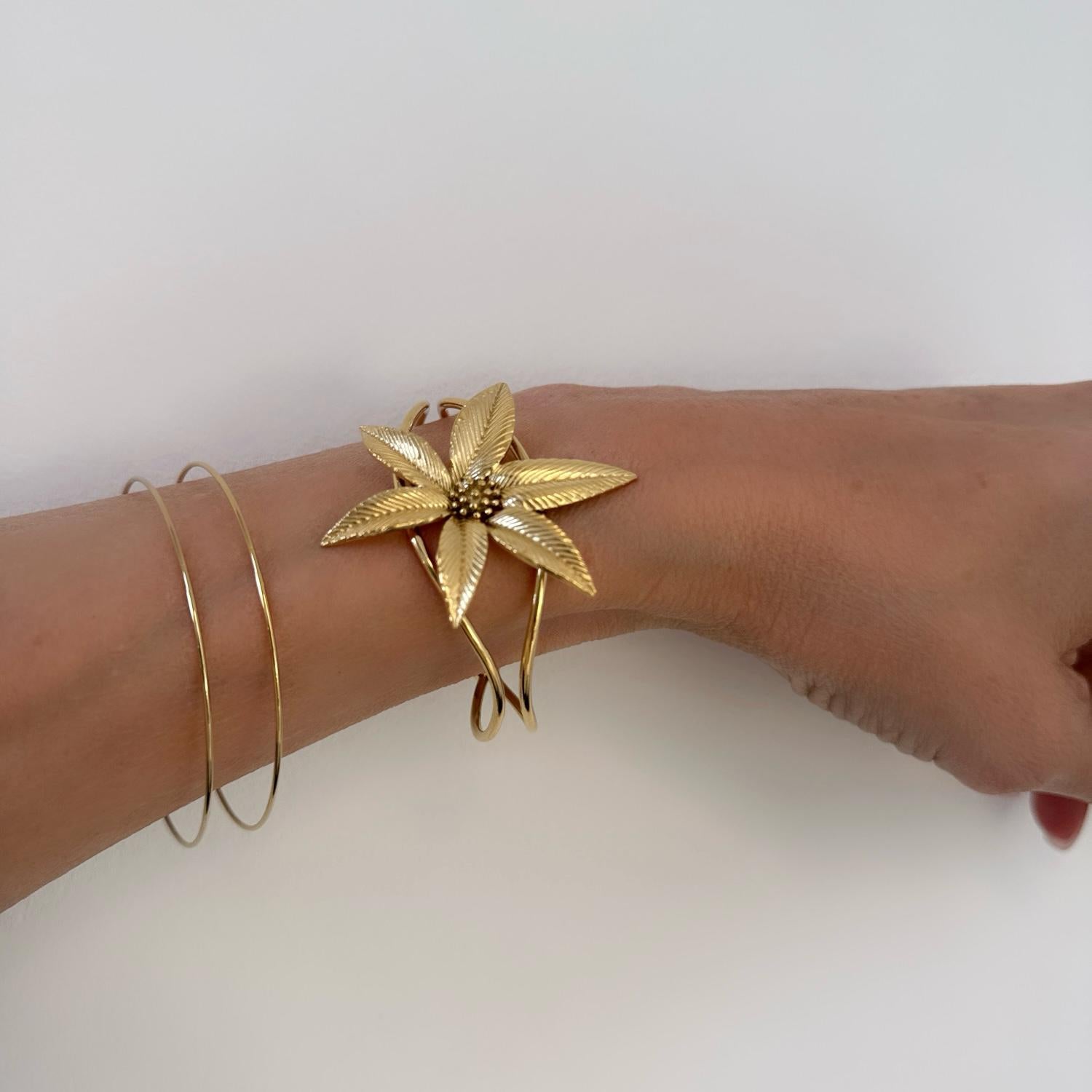 Dieser filigrane Armreif aus goldfarbenem Edelstahl bezaubert durch seine zarte Blütenverzierung. Ein elegantes Accessoire, das Ihrem Outfit einen Hauch von Eleganz verleiht. Hochwertige Materialien und präzise Verarbeitung garantieren Langlebigkeit und Beständigkeit. Perfekt für jeden Anlass.