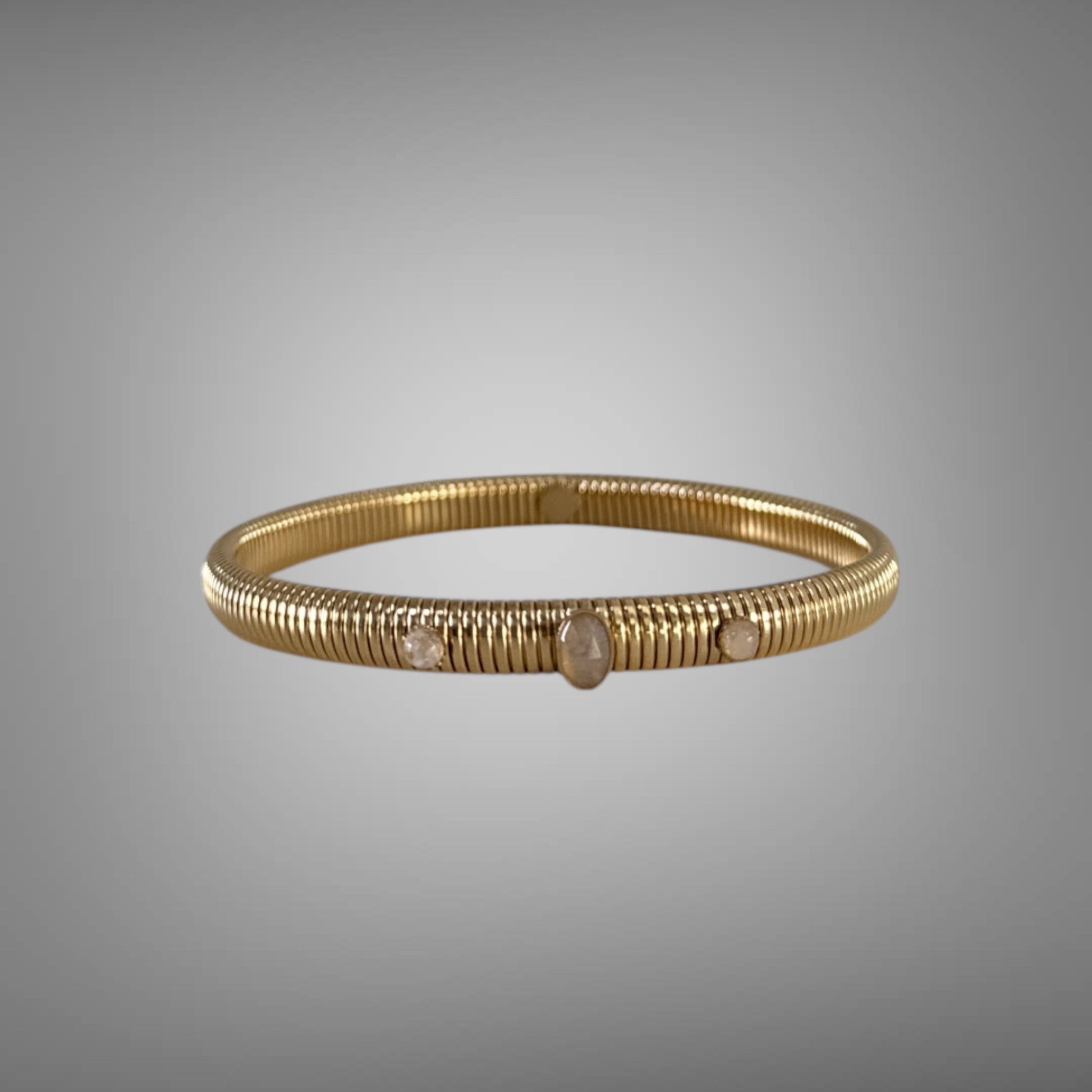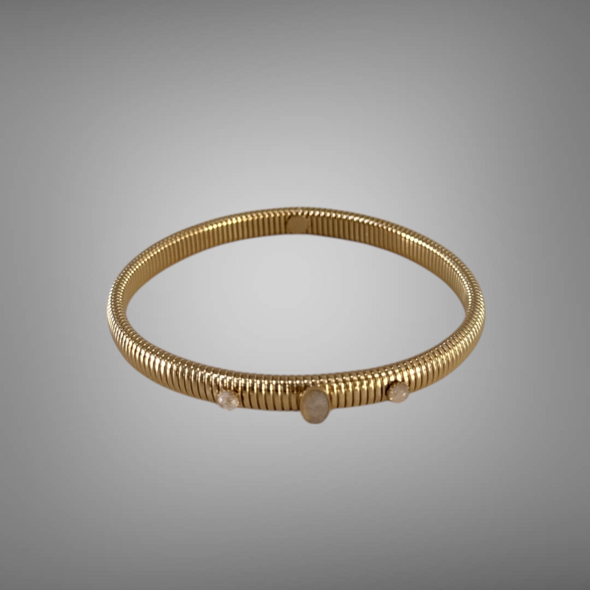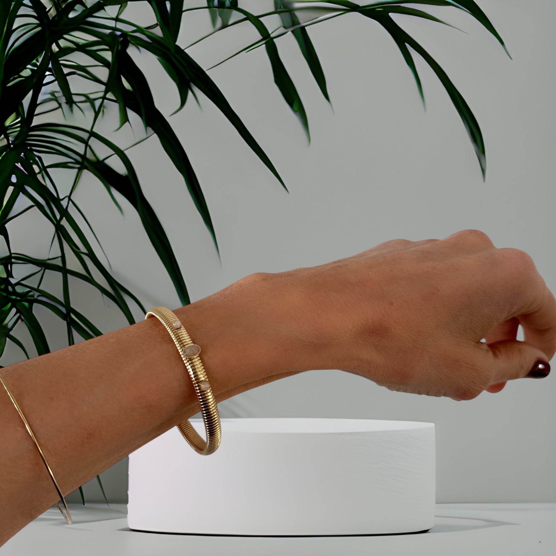 Dieser flexible Armreif aus hochwertigem Edelstahl ist mit echten Steinen besetzt und bietet dank seines angenehmen Tragekomforts eine ideale Ergänzung für jeden Look. Seine Vielseitigkeit macht ihn perfekt zum Kombinieren mit anderen Schmuckstücken, wodurch er sowohl im Alltag als auch zu besonderen Anlässen überzeugt.