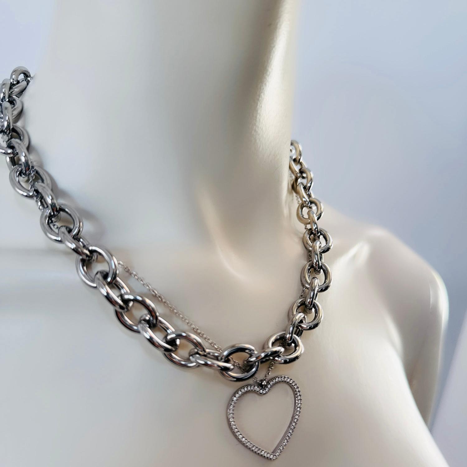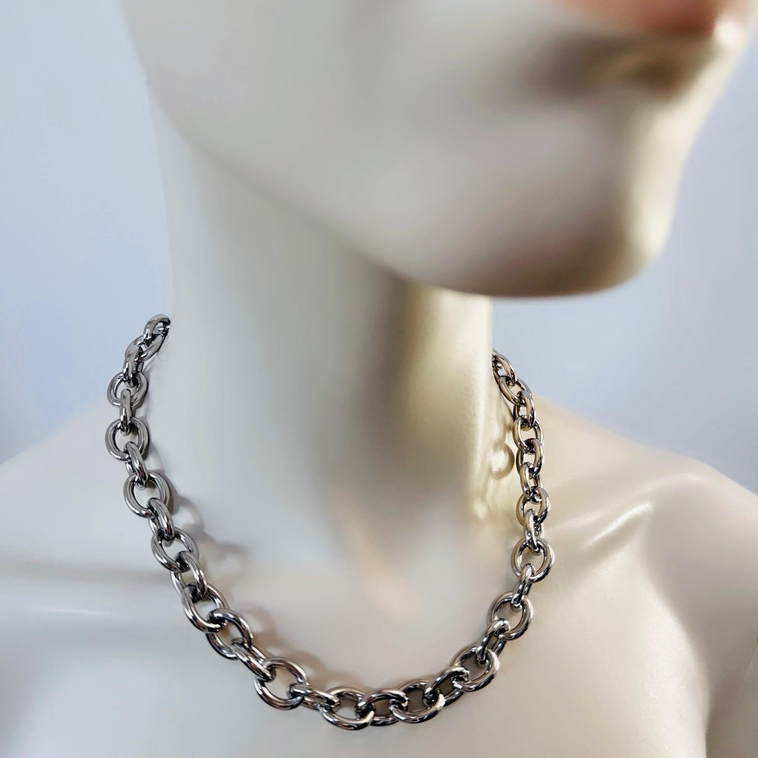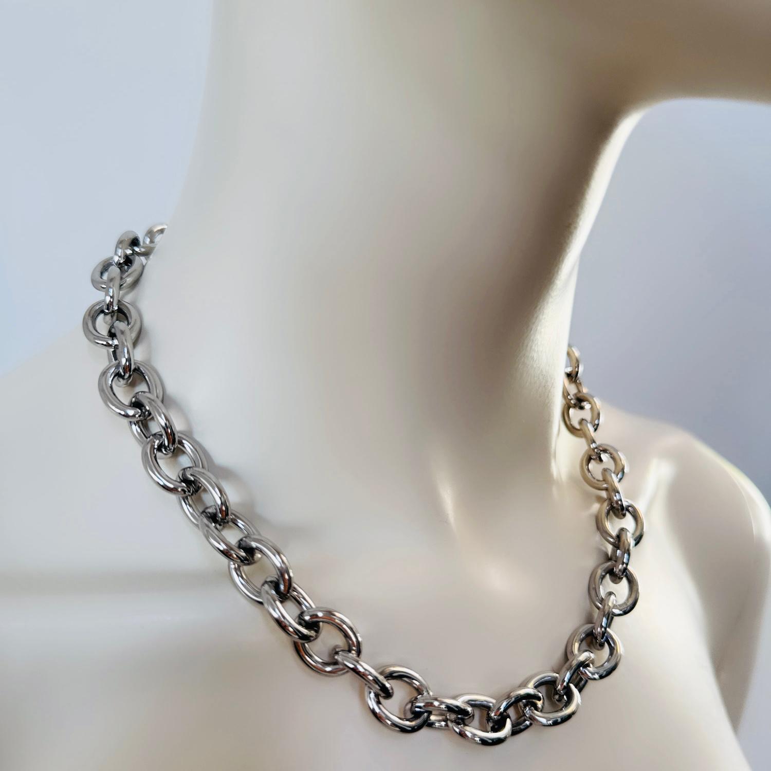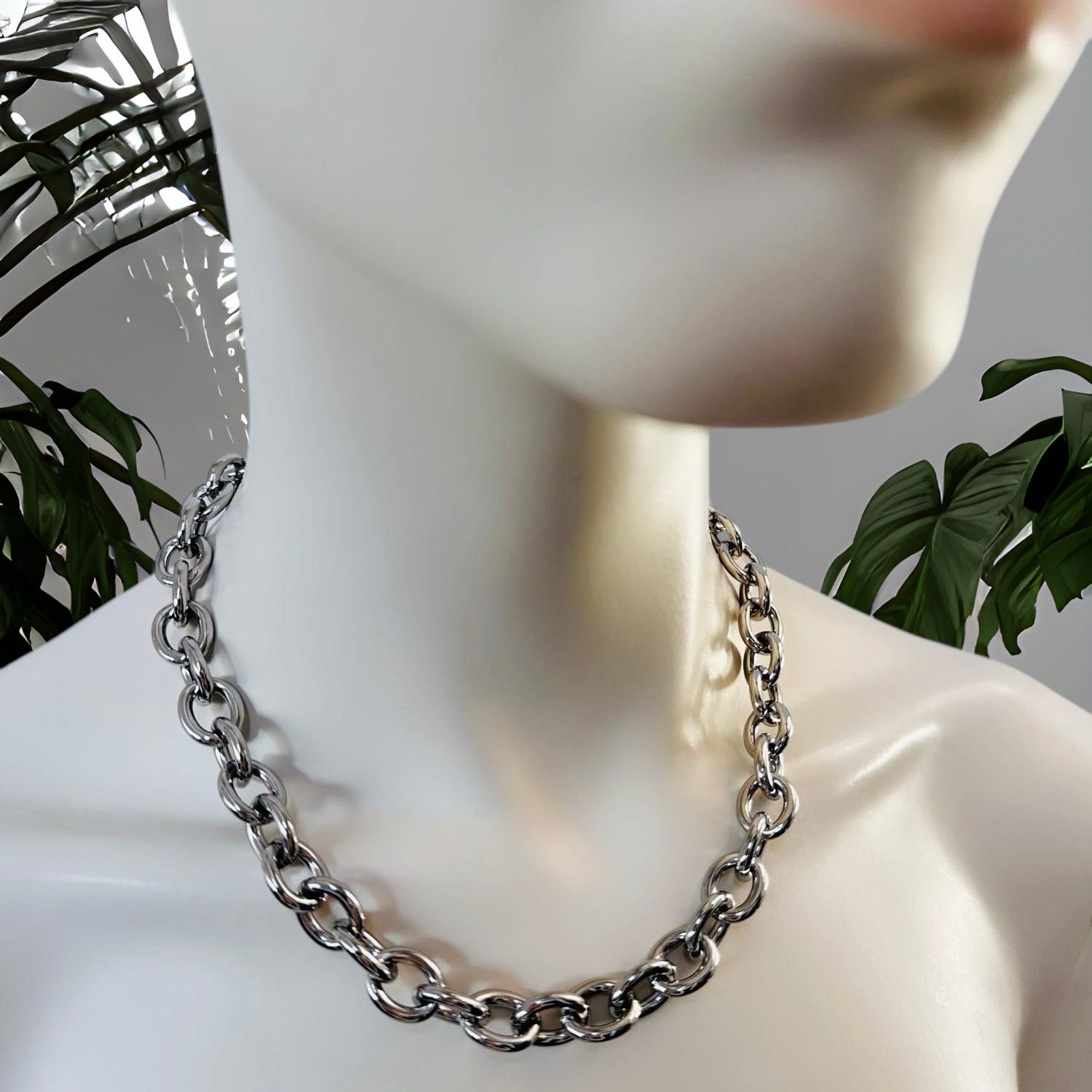 Verleihen Sie Ihrem Outfit das gewisse Etwas mit unserer eleganten Kette aus silberfarbenem Edelstahl. Das Statement-Stück lässt sich solo tragen oder für einen noch exklusiveren Look layern. Ein Must-Have für jede stilbewusste Fashionista.
