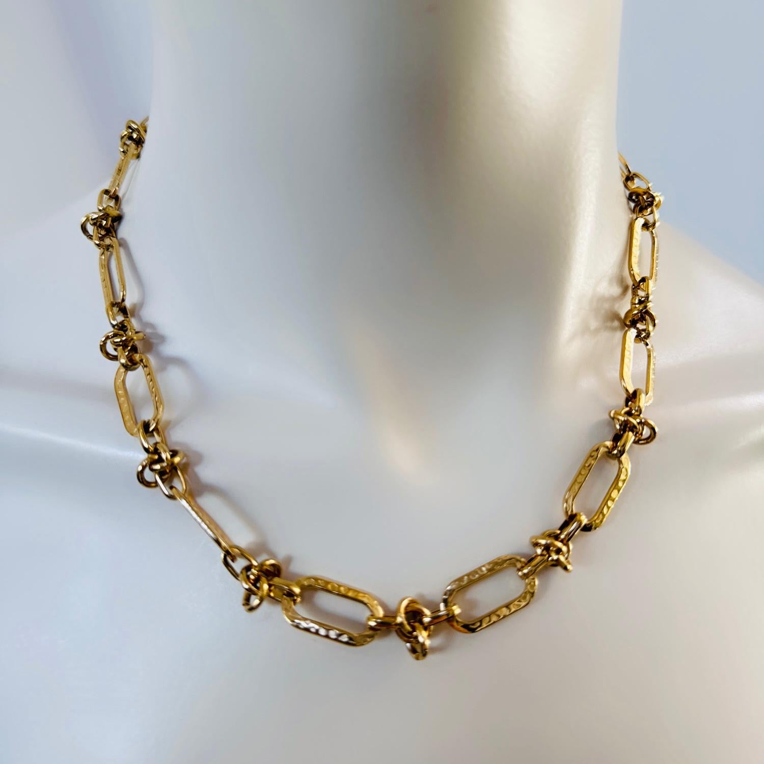 Diese atemberaubende Kette wird jedes Outfit aufwerten und Ihre Persönlichkeit zum Ausdruck bringen. Die einzigartigen Statement-Glieder in edlem Goldfarben werden aus hochwertigem Edelstahl gefertigt und versprechen Langlebigkeit und Eleganz. Perfekt für die Frau, die ihren Stil mit luxuriösem Geschmack unterstreicht.