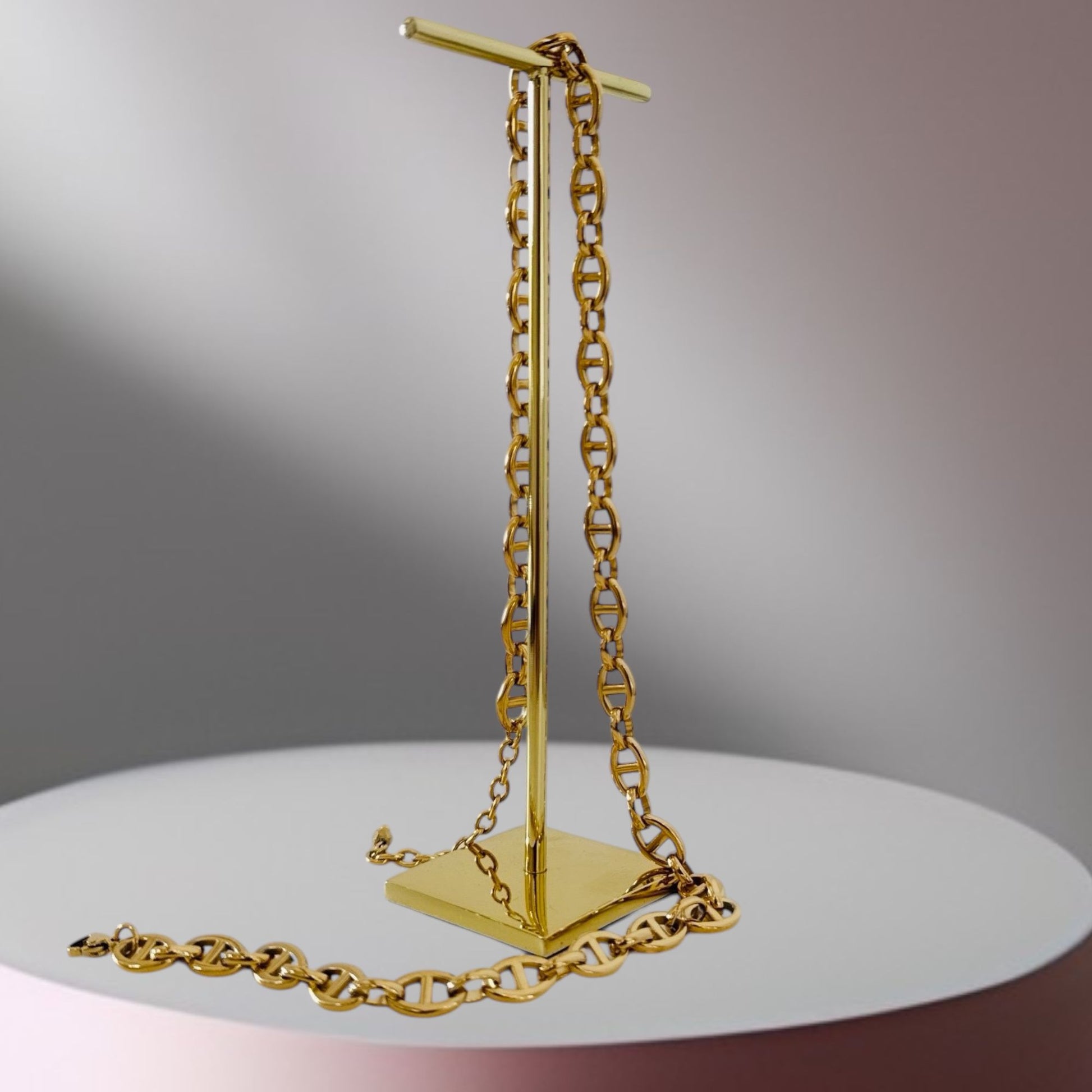 Diese luxuriöse Kette aus Edelstahl ist ein vielseitiges Schmuckstück, das sich perfekt zum Layern oder Solo tragen eignet. Der goldfarbene Ton verleiht jedem Outfit einen Hauch von Eleganz und Stil. Verleihen Sie Ihrem Look einen Hauch von Luxus mit dieser exklusiven Kette.
