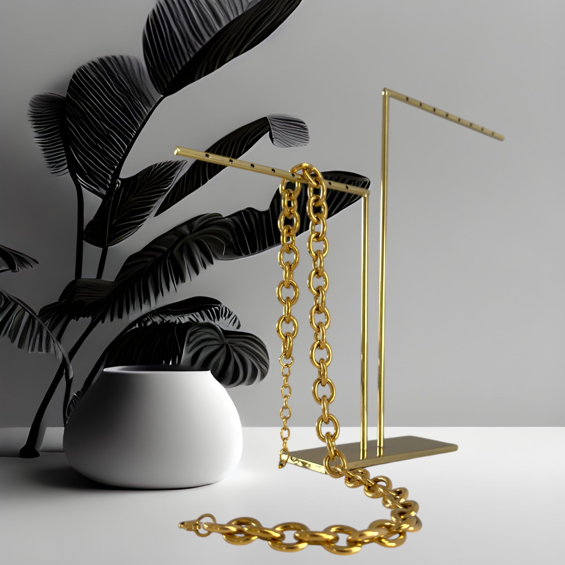 Diese goldfarbene Kette aus Edelstahl ist ein Statement-Schmuckstück, das perfekt zum Layering oder alleinigen Tragen geeignet ist. Kurz und elegant, verleiht sie jedem Outfit einen Hauch von Luxus und Exklusivität. Ein Must-Have für alle, die ihren persönlichen Stil zum Ausdruck bringen möchten.