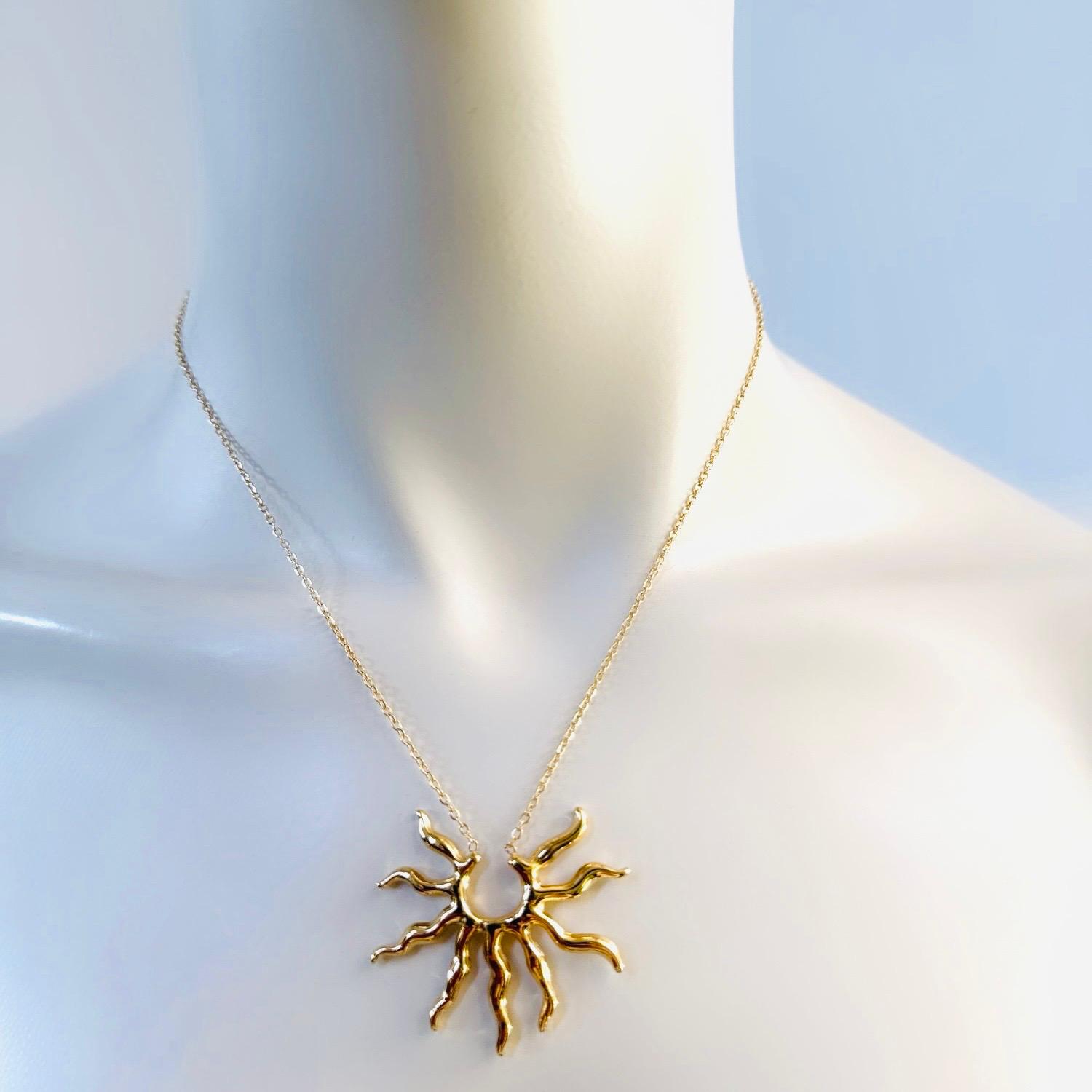 Diese feine goldfarbene Kette ist der perfekte Begleiter für den Sommer. Mit ihrem abstrakten Sonnensymbol sorgt sie für eine sommerliche Stimmung und gibt jedem Outfit das gewisse Etwas. Aus hochwertigen Materialien gefertigt, ist sie nicht nur optisch ein Hingucker, sondern auch langlebig und robust. Holen Sie sich mit dieser Kette ein Stück Sommerlaune in Ihren Alltag.