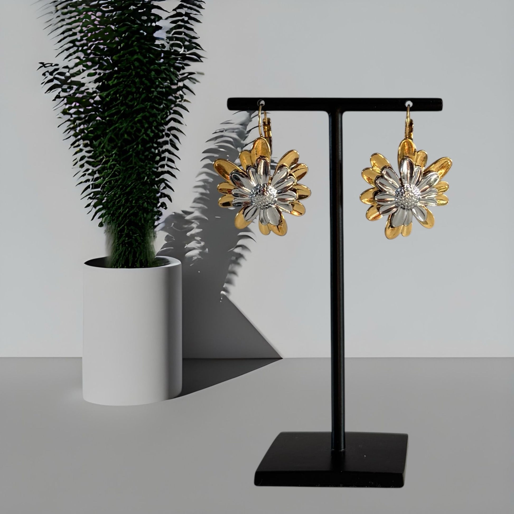 Diese atemberaubenden Ohrringe wurden mit liebevollen Details in Form von Blüten Charm gestaltet. Sie sind in silber und goldfarben erhältlich und verleihen jedem Outfit einen Hauch von Eleganz. Die perfekte Ergänzung für jedes Schmuckkästchen.
