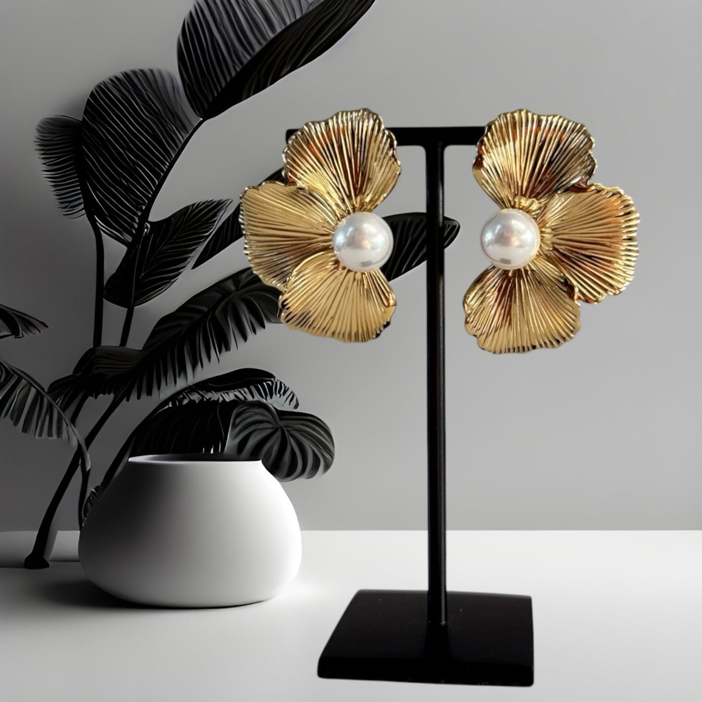 Entdecken Sie unsere eleganten Ohrstecker, verziert mit halben Blüten und edlen Perlen. Perfekt für jeden Anlass und verleihen Ihrem Look das gewisse Etwas. Erhalten Sie hochwertige Qualität und zeitloses Design in einem.